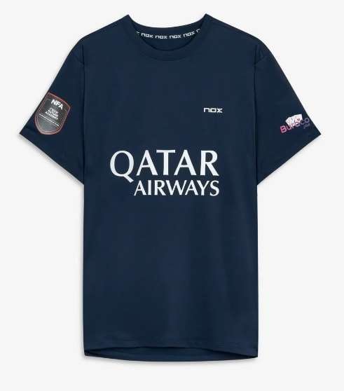 Incluye serigrafía de su nombre y sponsors: Qatar Airways, Buraco Plus y Nox Future Academy.