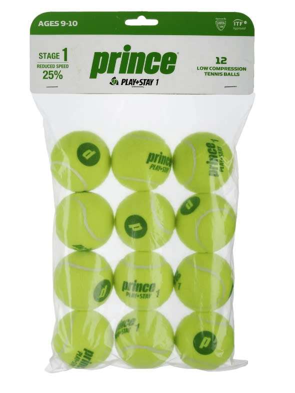 Bolsa de 12 pelotas PRINCE Stage 1 con un 25% más lentas e ideales para iniciantes de cualquier edad.