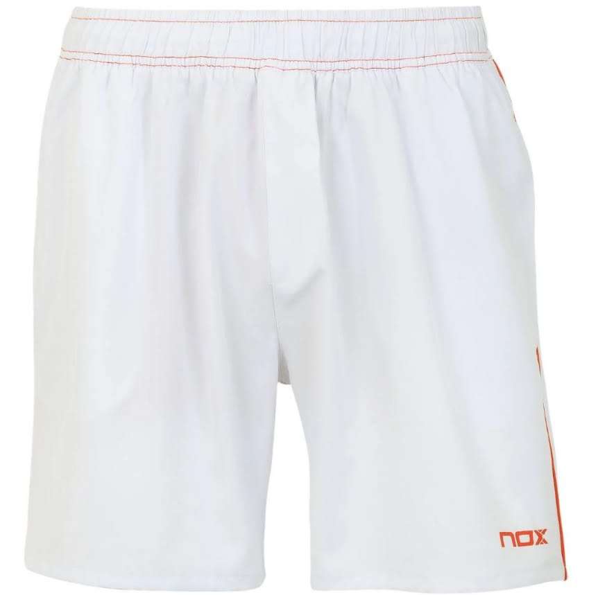 Short Nox Team Blanco Logo Rojo para hombre con malla interior y bolsillos laterales.