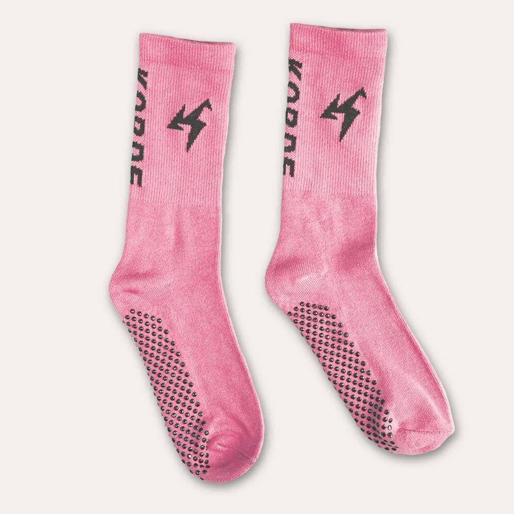 Las Calcetas Korde han sido creadas con una composición de alta calidad, combinando 75% algodón, 25% poliéster y 5% spandex para ofrecer suavidad, resistencia y elasticidad. Su diseño en color palo rosa y la marca “Korde” en la parte posterior agregan un toque de estilo. Además, cuentan con una textura antideslizante en la parte inferior, ideal para mejorar la estabilidad en la cancha.